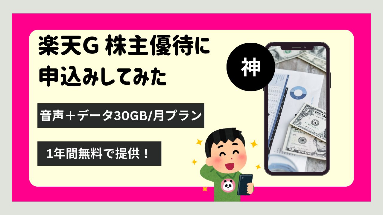 優待を利用することで「楽天モバイル回線」の音声+データ(30GB/月)プランを1年間無料で利用可能。(各社が提供している格安SIMの30GBプランは月3,000円程度かかる)